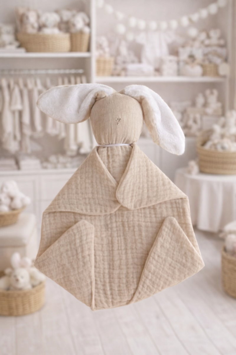 Pensé pour envelopper bébé de douceur dès ses premiers instants, ce doudou en gaze de coton deviendra rapidement son compagnon préféré !